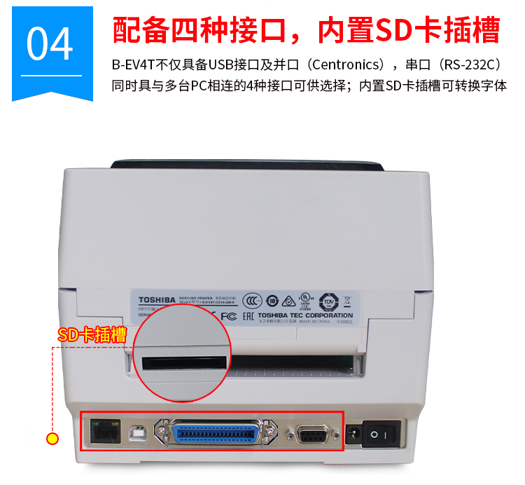 東芝B-EV4能夠直接、快速從您的PC桌面按需打印標(biāo)簽和票務(wù)信息,緊湊型專業(yè)標(biāo)簽打印功能,讓您在一個(gè)按鈕的觸碰下,便能輕松地生產(chǎn)專業(yè)標(biāo)簽。203 或300 dpi 打印分辨率機(jī)型同時(shí),具備SD卡插槽擴(kuò)展的功能,分辨率203dpi或300dpi能滿足多樣化的打印需求。